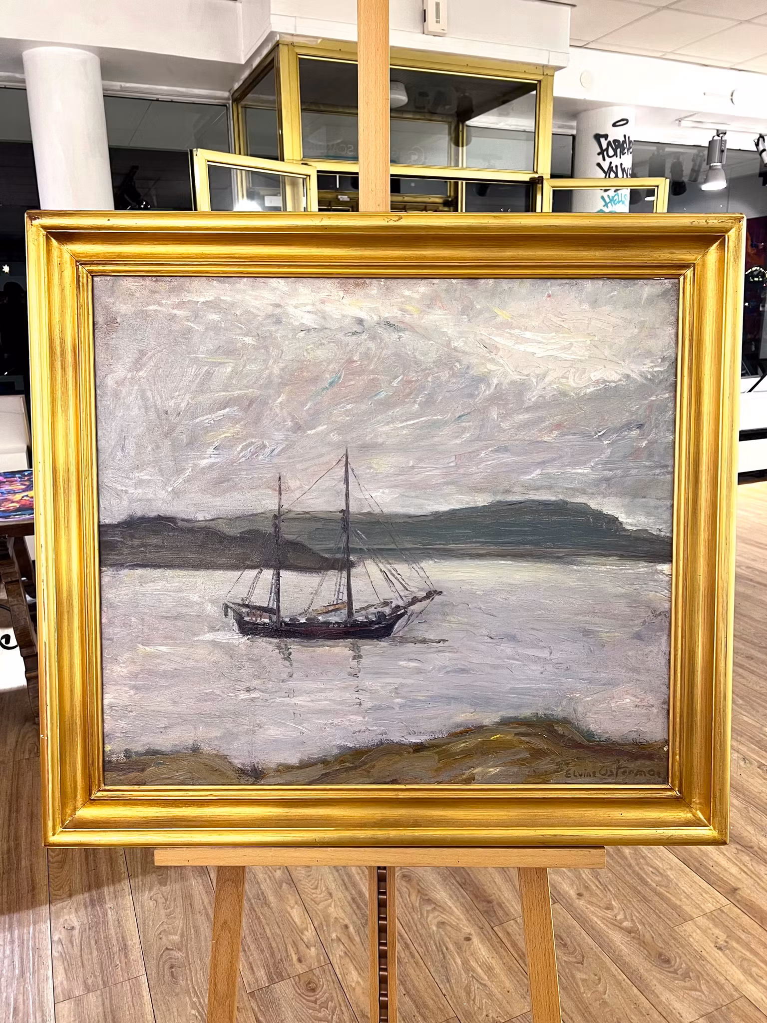 "Skutan Framåt" Olja på duk av Elvine Osterman (1907-1997). 85x77 cm