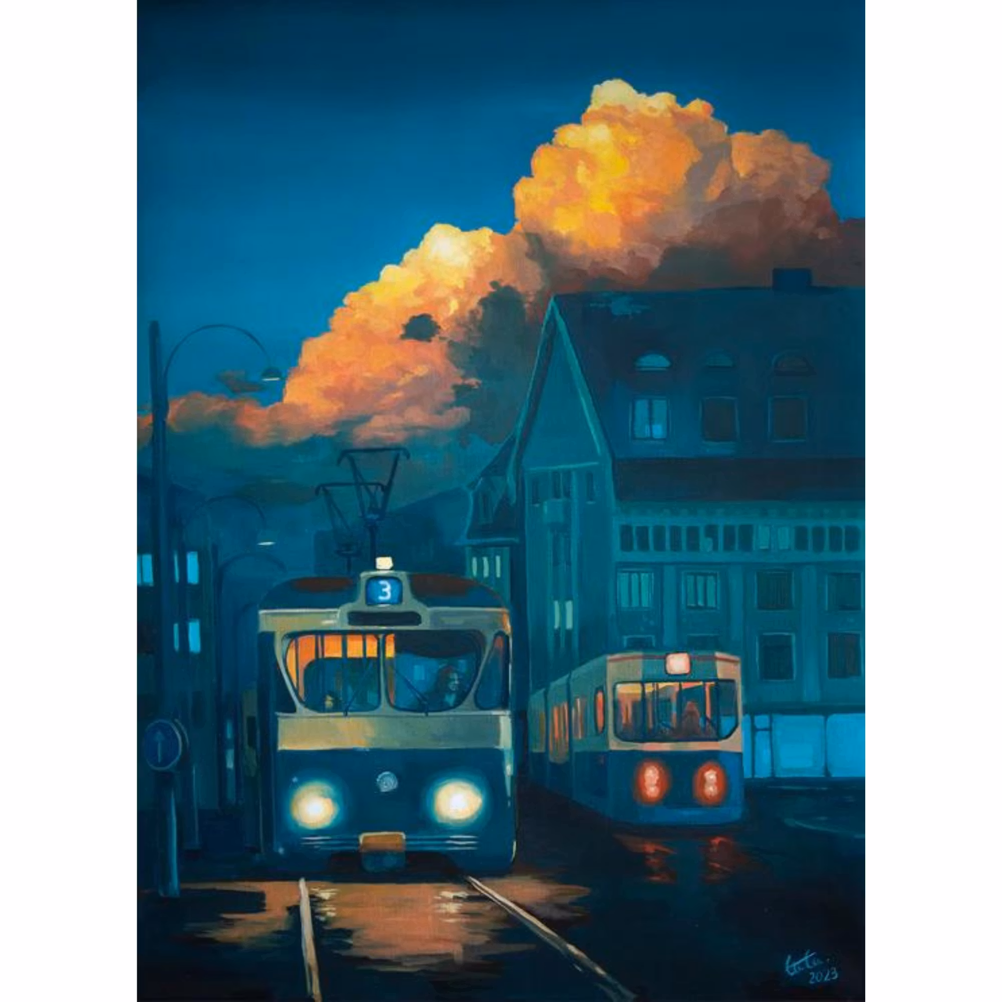 Elin är en självlärd svensk konstnär som arbetar både med traditionella medier som olja och med moderna digitala tekniker. Hon har varit aktiv sedan 2015 och har sin ateljé i Göteborg, där hon också bor. Elin hämtar inspiration från livets enkla händelser och finner värde i de ögonblick vi ofta ignorerar som oviktiga pauser mellan viktiga händelser. För henne är det i dessa pauser som livet verkligen utspelar sig. På senare år har Elin ägnat sig åt att måla en serie verk som fångar vardagsscener från spårvagnsresor i Göteborg. För henne representerar dessa resor de betydelsefulla men ofta obemärkta mellanrummen i livet. Spårvagnarna blir en symbol för stadens gemensamma erfarenheter och skapar en känsla av gemenskap när de för passagerare från en plats till en annan. De blir bakgrunden för vardagliga historier och interaktioner.