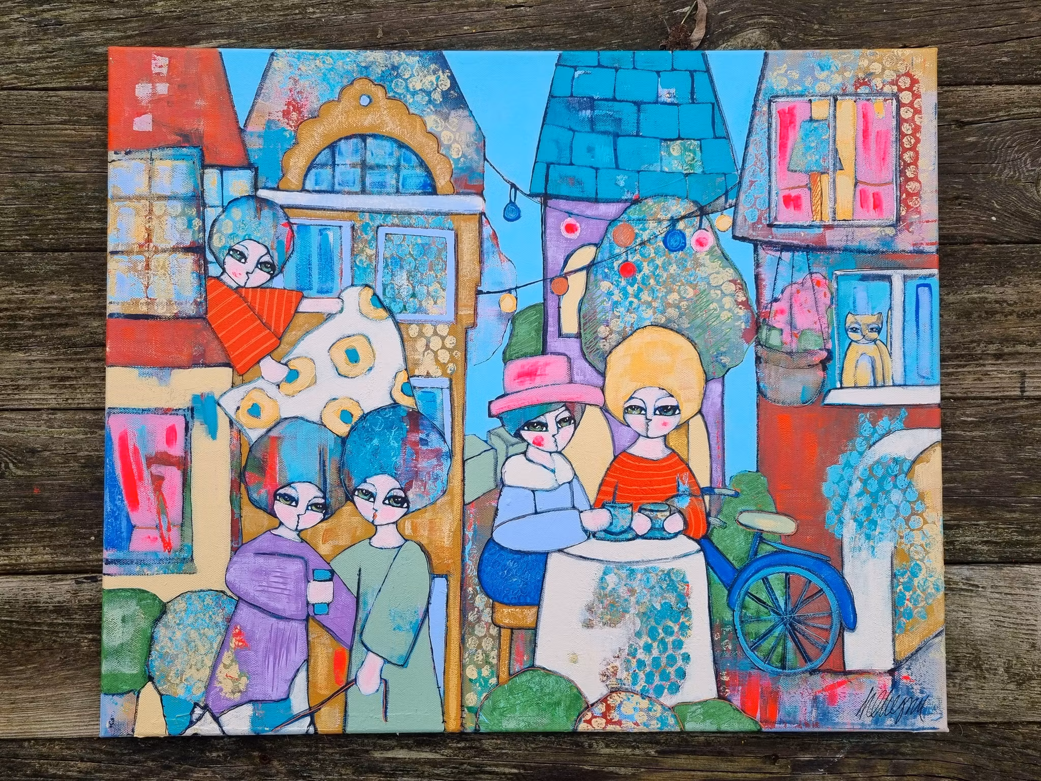 Hanna Ekegren - Livet i gränden, akryl på duk, 50 × 60 cm