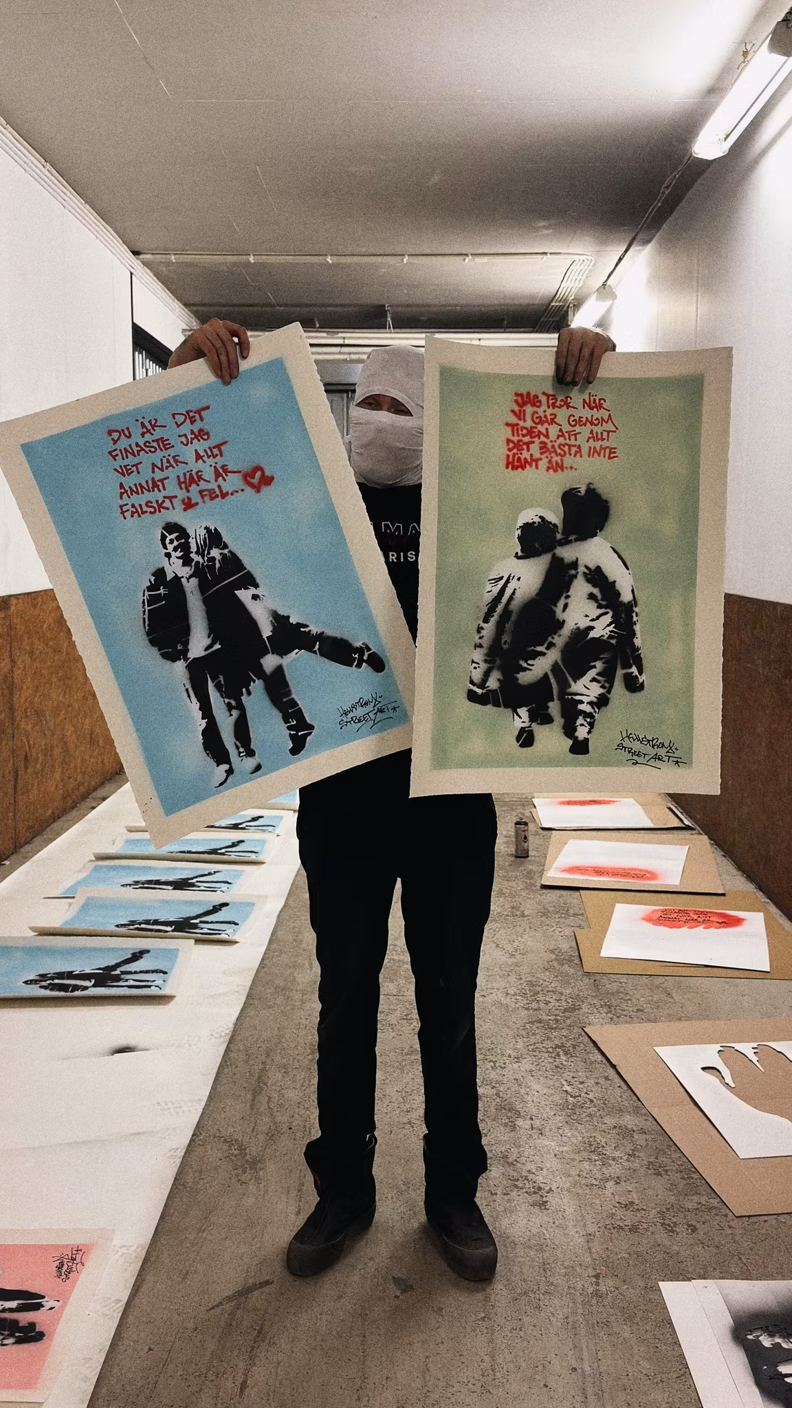 Efter slutfört arbete förstörs stencilerna av konstnären.