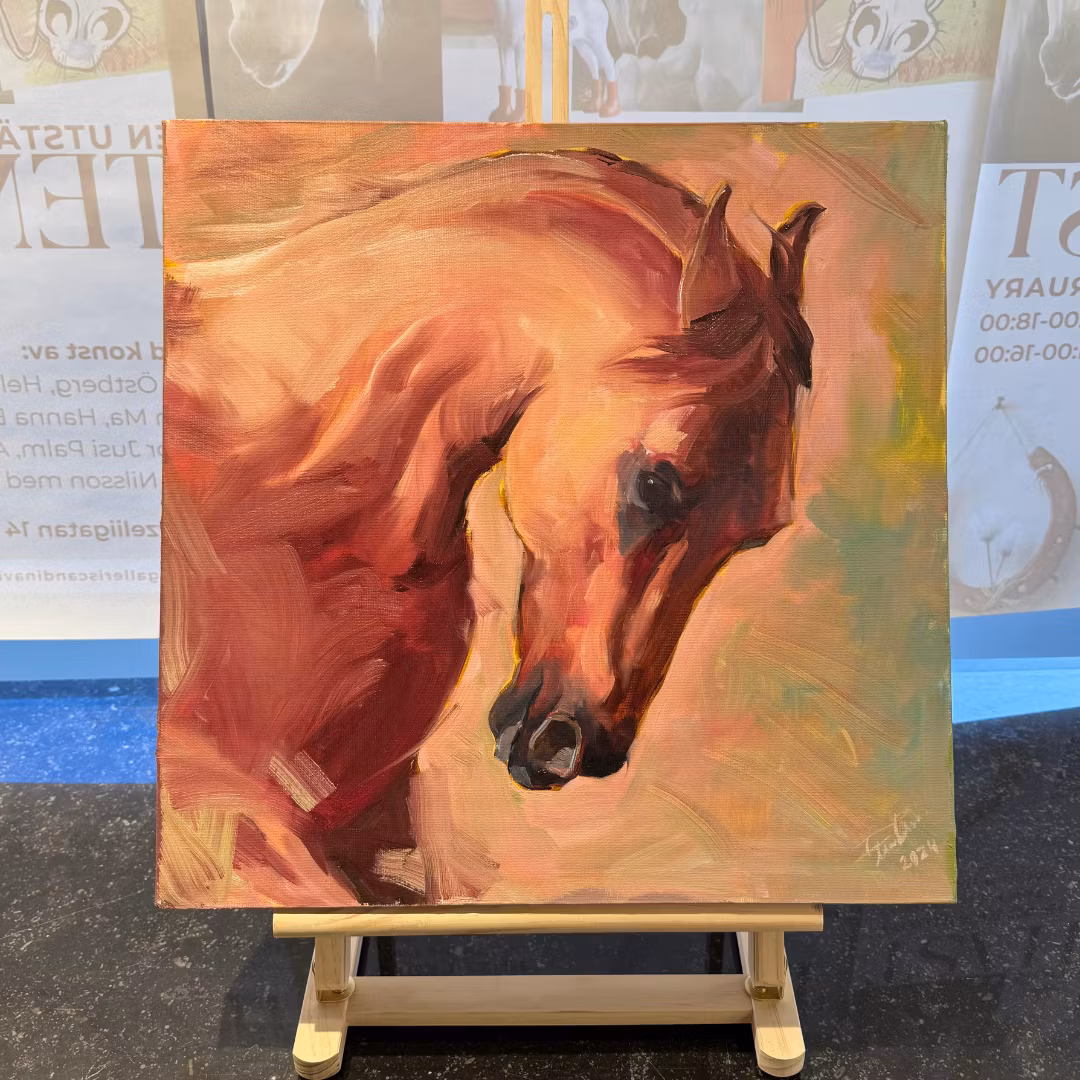 Konstverket är en del av utställningen "TEMA:HÄST" på Galleri Scandinavia i Göteborg som pågår 15-23 februari 2025.