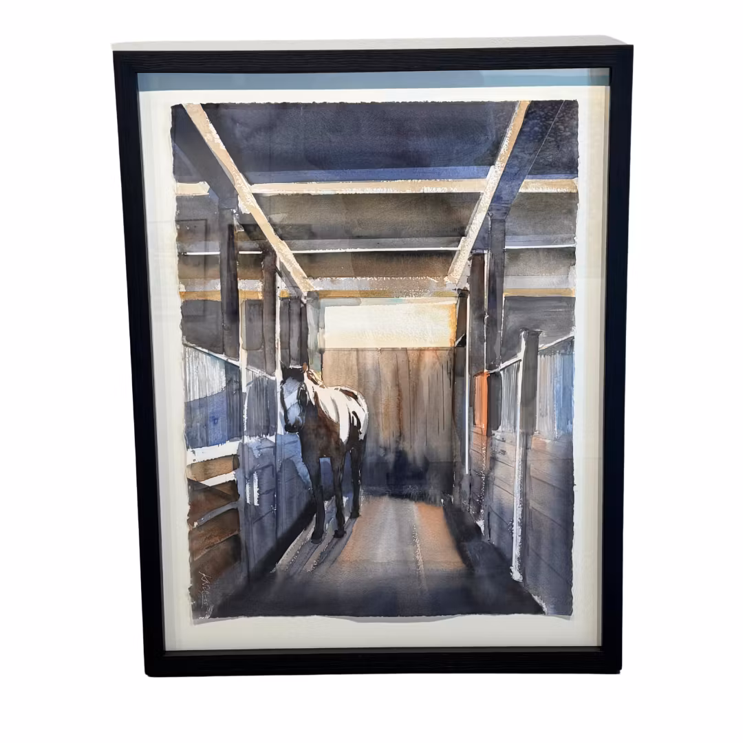 "Stallet" akvarell av Kalle Nilsson. 72x92 cm.