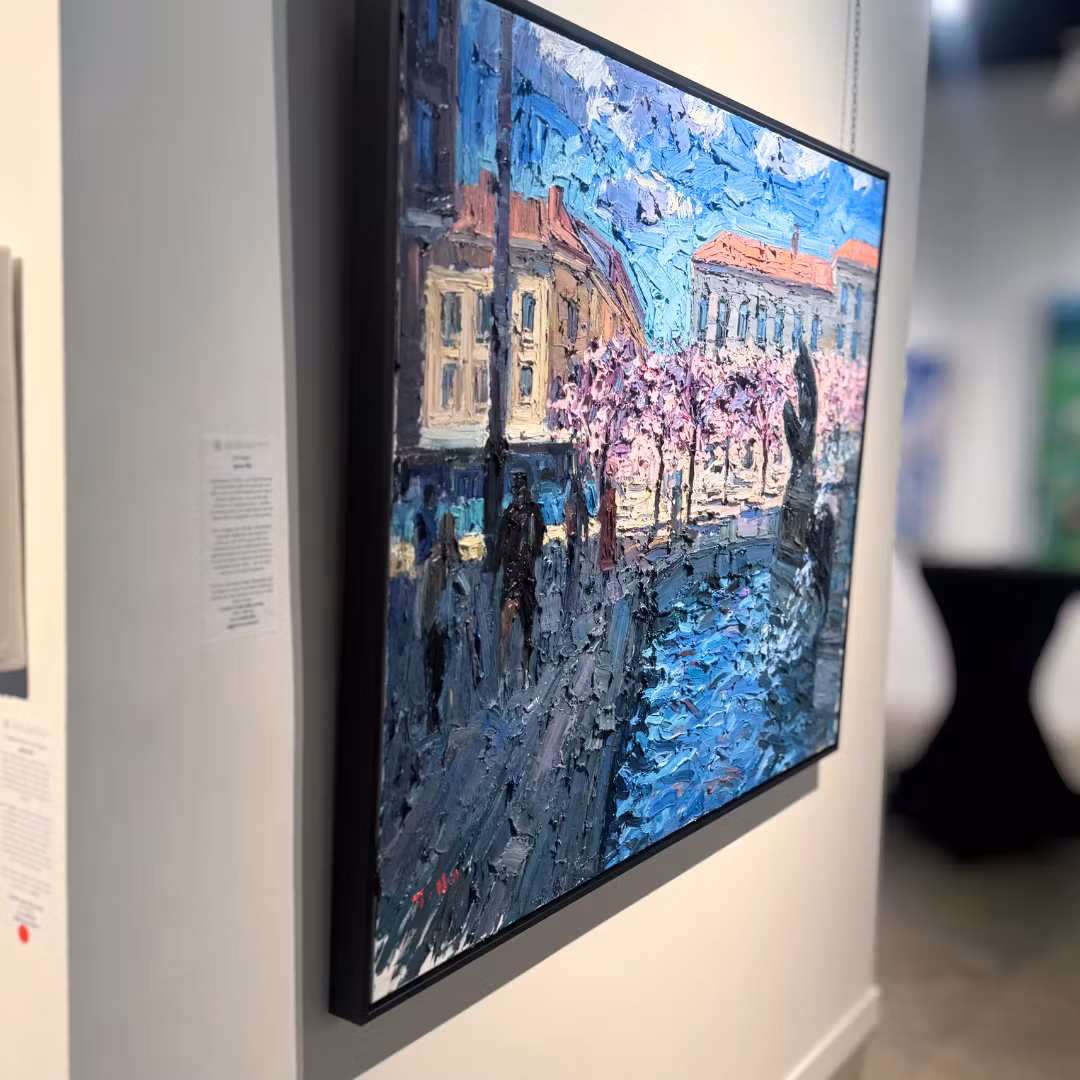 Det är en målning som fångar både platsens själ och måleriets energi – ett porträtt av Göteborg i full blom, där varje färg bär på ett eko av vårens första andetag.