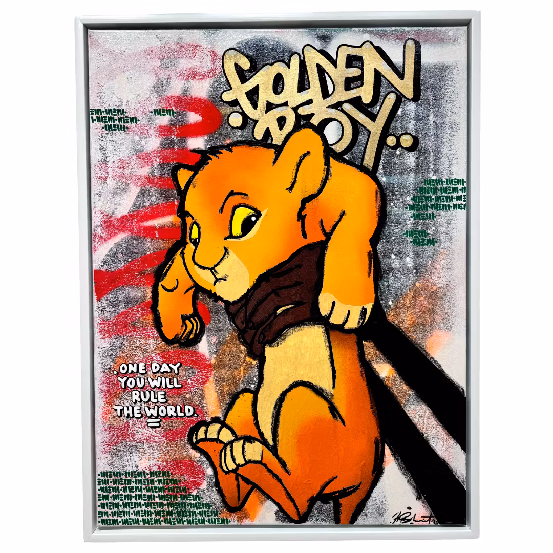 "Golden Boy" Blandteknik på duk av Mike Blomqvist, 63x83 cm