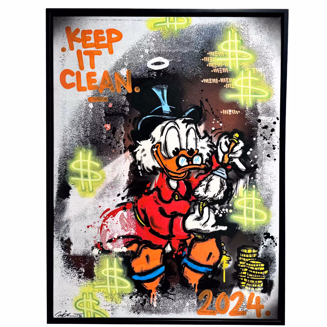 "Keep it clean" Blandteknik på duk av Mike Blomqvist, 63x83 cm