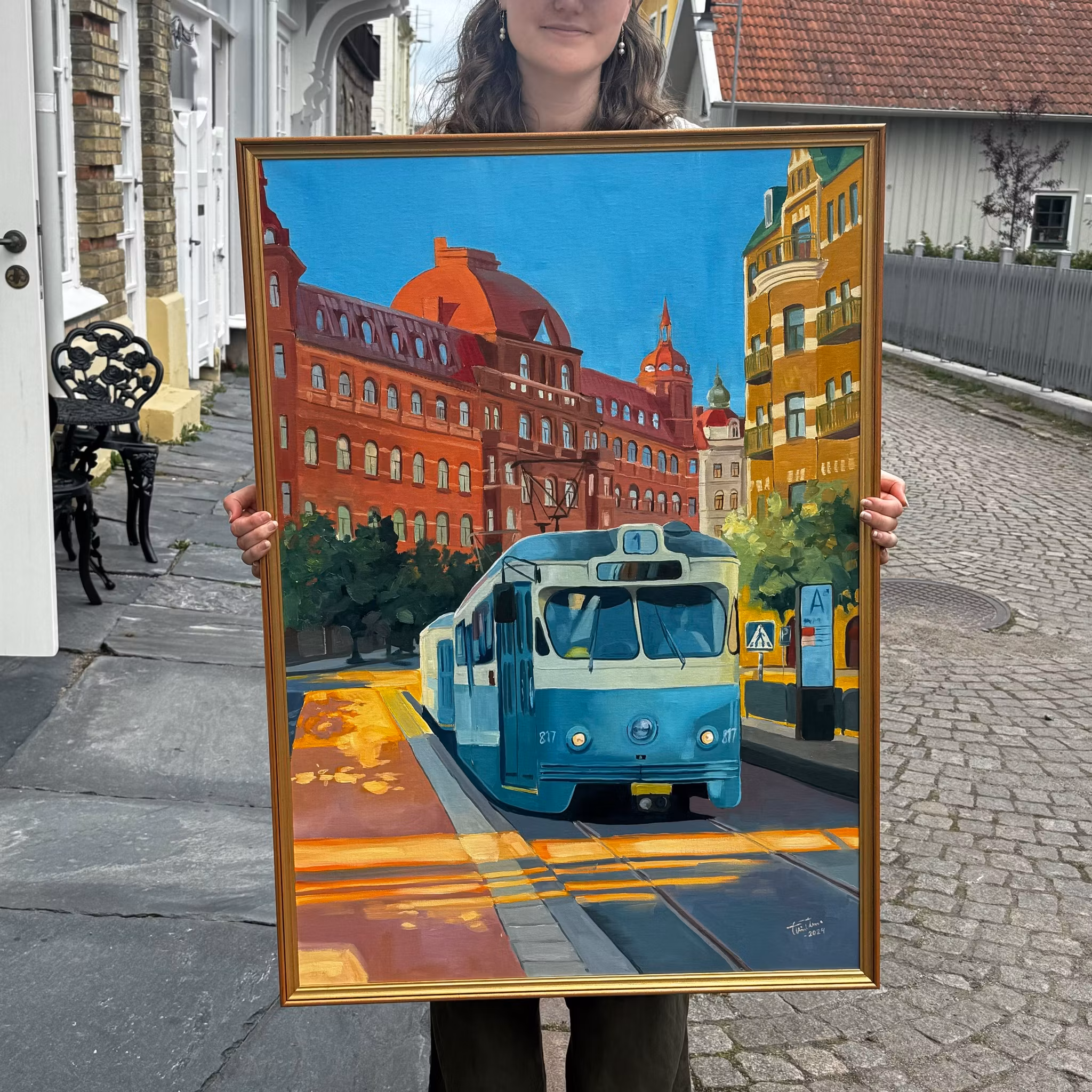 "Prinsgatan" - Olja på linneduk av Elin Östberg, 70x100 cm