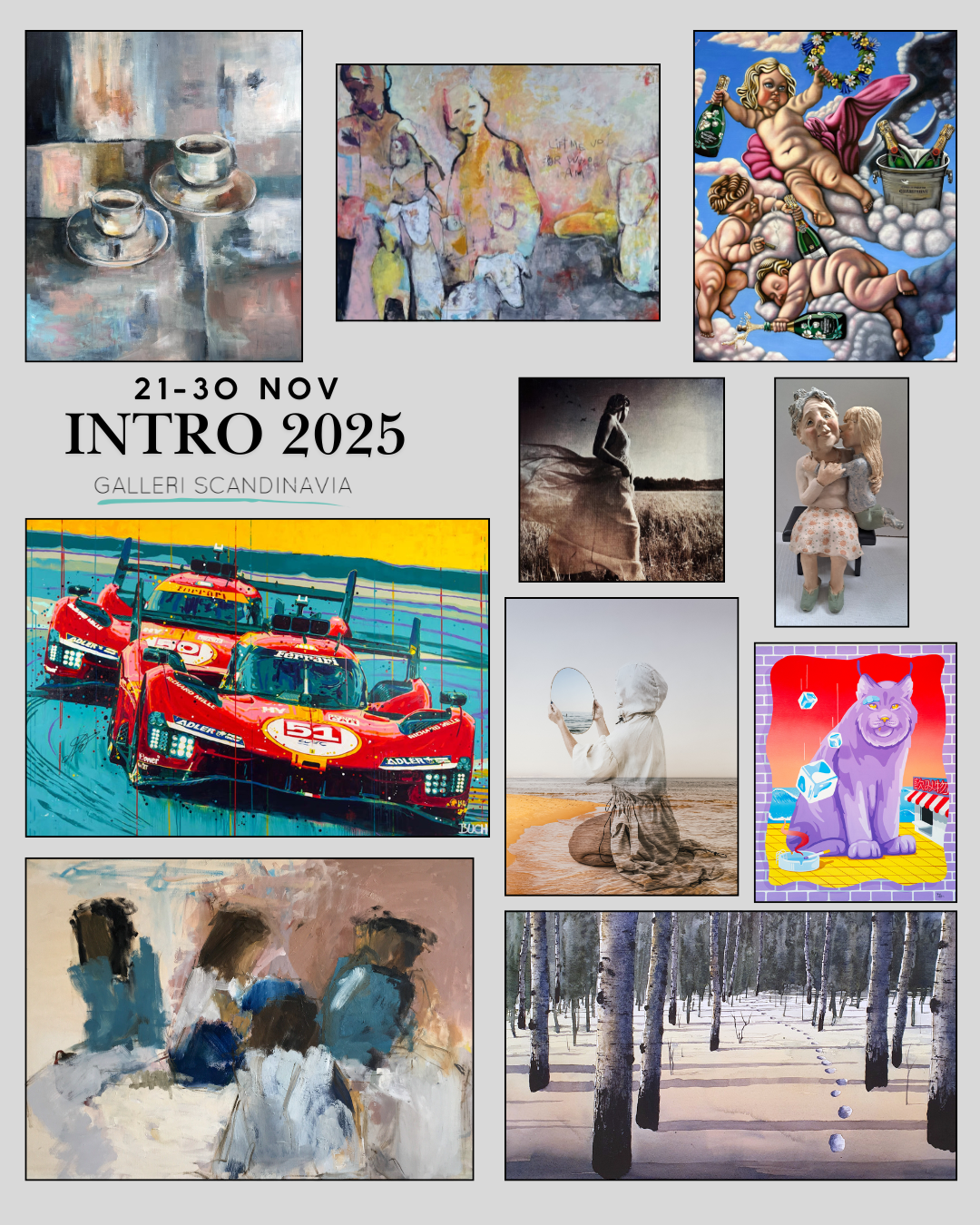 Introduktion 2025 samlar tio konstnärskap som just nu formar några av de mest intressanta uttrycken inom samtida nordisk konst. De är alla nya hos Galleri Scandinavia, och har valts ut från nästan 400 ansökningar – ett urval som speglar autenticitet, riktning och ett konstnärligt driv som känns både egenartat och framtidsinriktat. Här möts måleri, akvarell, fotografi och skulptur i en helhet där varje röst står starkt för sig själv, men där kombinationen skapar ett rikare, större samtal om vad bildskapande kan vara idag.